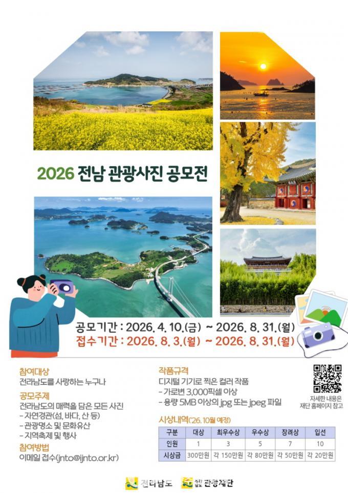 [´ëÇѱâÀÚÇùȸ ±¤ÁÖÀü³²Çùȸ] Àü¶ó³²µµ´Â ÀÚ¿¬°æ°ü°ú °ü±¤Áö, ÃàÁ¦ µî Áö¿ªÀÇ ´Ù¾çÇÑ ¸Å·ÂÀ» ³Î¸® ¾Ë¸®°í ¼öÁØ ³ôÀº »çÁø ÄÜÅÙÃ÷¸¦ ¹ß±¼Çϱâ À§ÇØ ¡®2026³â Àü³² °ü±¤»çÁø °ø¸ðÀü¡¯À» ÃßÁøÇÑ´Ù.
