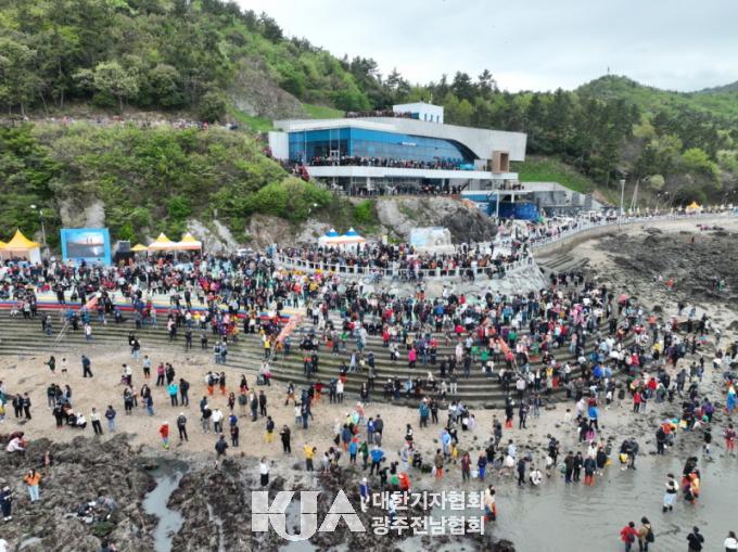 [´ëÇѱâÀÚÇùȸ Áøµµ±ºÁöȸ ¹Ú¿ëÁØ ±âÀÚ] Áøµµ±ºÀÌ 17ÀϺÎÅÍ 20ÀϱîÁö 4Àϰ£ °í±º¸é ȸµ¿¸® ÀÏ¿ø°ú ÁøµµÀ¾ ö¸¶°ø¿ø¿¡¼­ °³ÃÖÇÑ ¡®Á¦46ȸ Áøµµ ½ÅºñÀÇ ¹Ù´å±æ ÃàÁ¦¡¯¿¡ ¾à 9¸¸ ¸íÀÇ °ü±¤°´ÀÌ ¹æ¹®Çϸç, ÃàÁ¦°¡ ¼ºÈ²¸®¿¡ ¸¶¹«¸®µÆ´Ù.